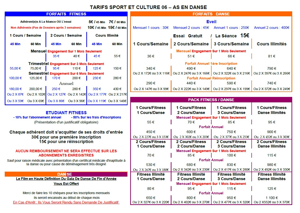 Notre école de danse, comme notre centre de fitness, ont les tarifs les moins chères de la région !